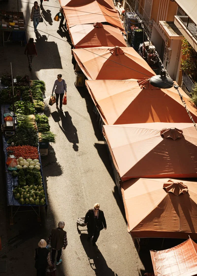 Market voices mingle with café laughter,